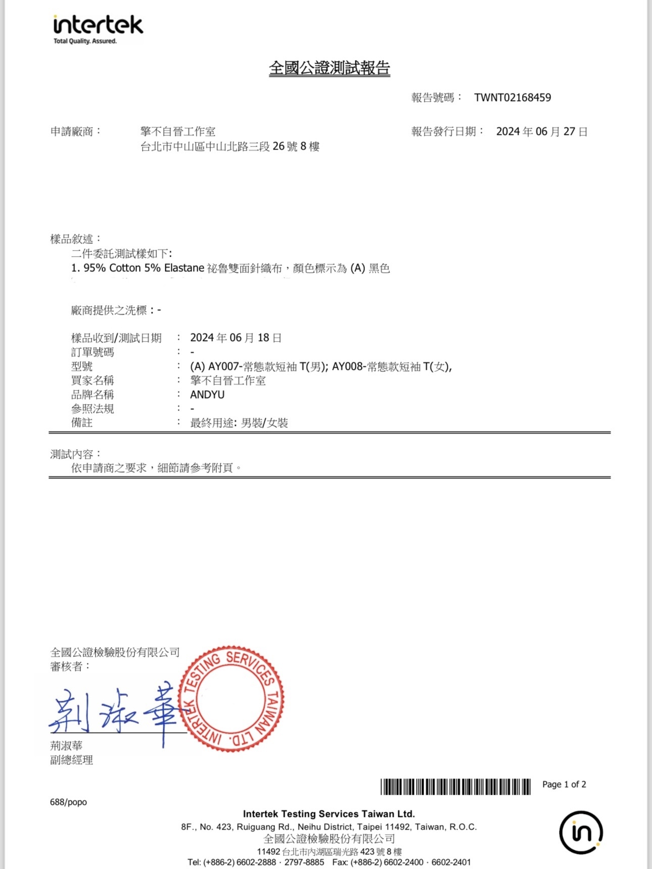 材料 : 95% 秘魯棉 5% 彈性纖維
