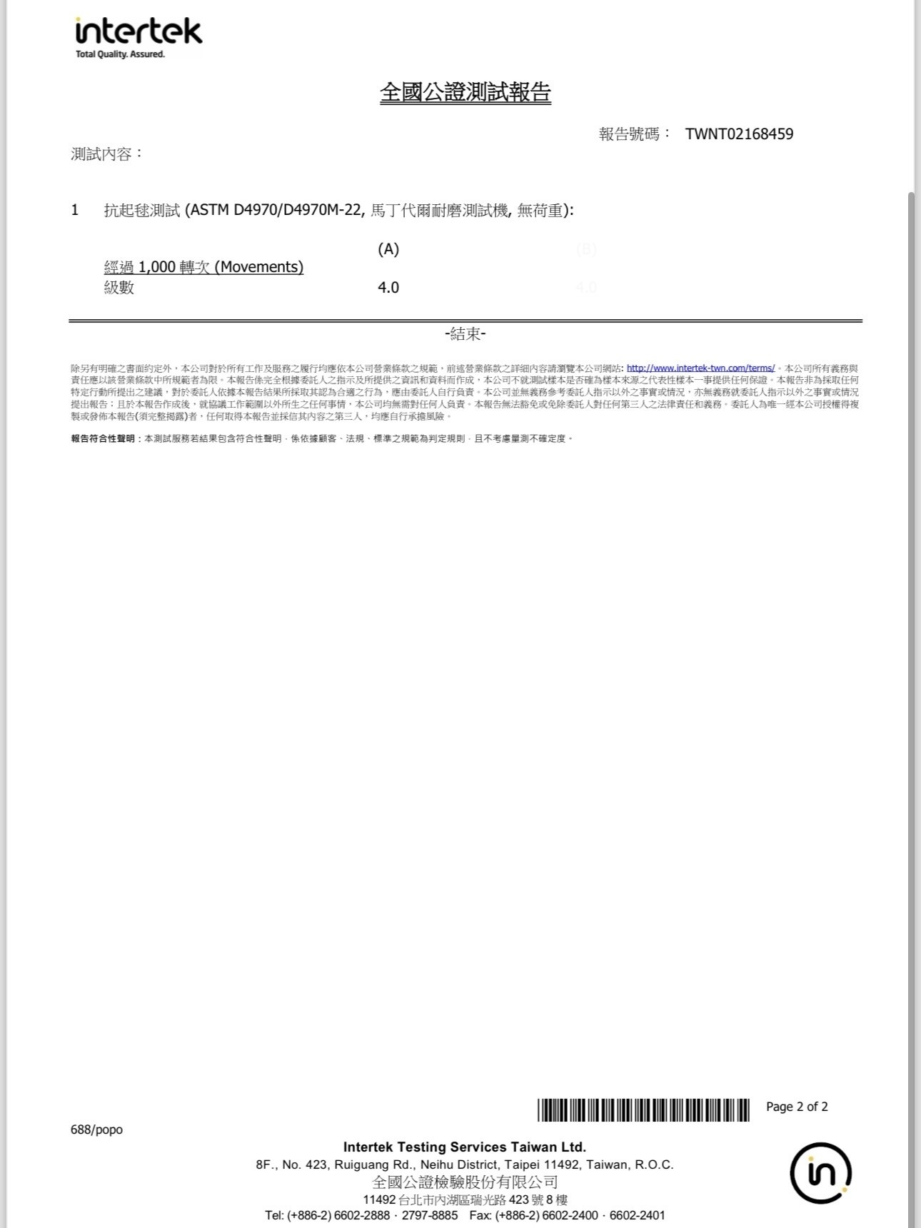 ※面料通過國際抗起毬耐磨測試為(4.0)。